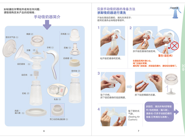 QA03 手動(dòng)吸奶器可提供配件:密封式氣墊、膈膜、活塞、手柄、吸奶器身、吸奶閥、密封墊(寬口)、底座/漏斗蓋、寬口徑奶瓶適配器。